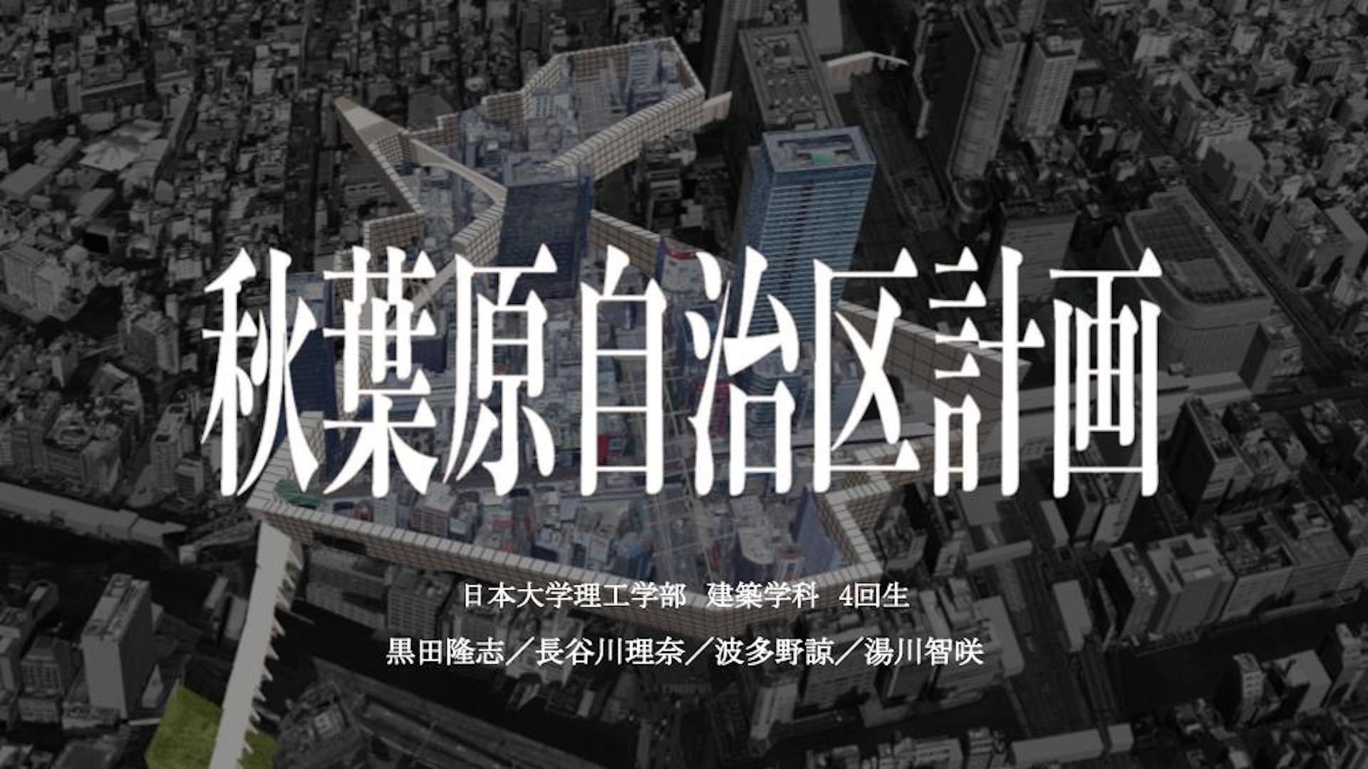 その際、壁という要素に注目して2種類の壁を作った。1つは、日本と秋葉原を分ける“分離の壁”、もう一つは、壁内エリア(オタクのジャンル)を仕切ると同時に互いに影響を及ぼし合う“連関の壁”である。この2つの壁で自治区を形成する。壁内に入るには検問所を通り、そこで自治区内のルールである12カ条の宣言をする必要がある。また、分離の壁は再開発によって建設された高層ビルを貫き、議会、教育・研究機関、病院、墓地に変化させる。さらに、壁の構造はラーメン構造で、壁内の空間は移動のための道路、避難所、設備系統になっている。壁は区切るだけでなく、自治区の生活も支えるだろう。